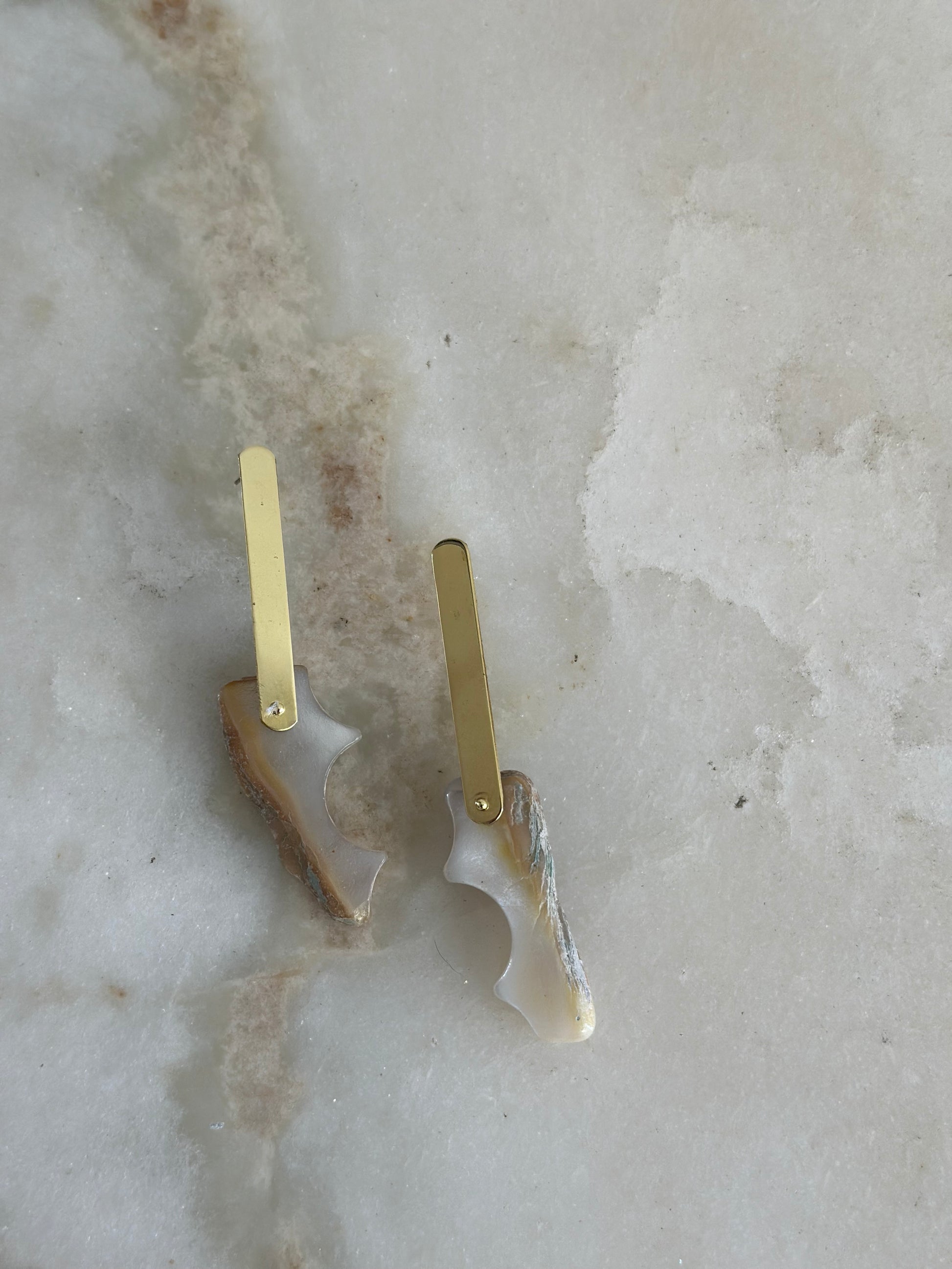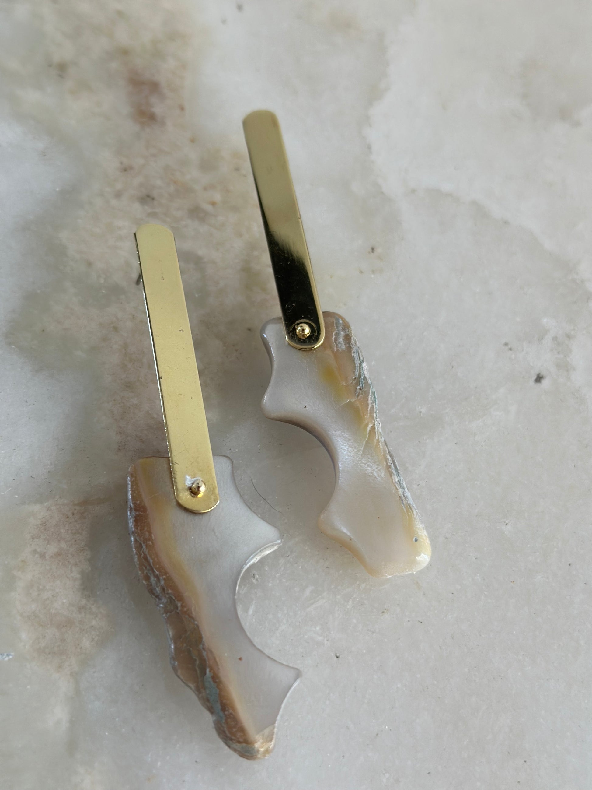 Prendedor en Bronce más piedra en nácar totalmente irregular.
