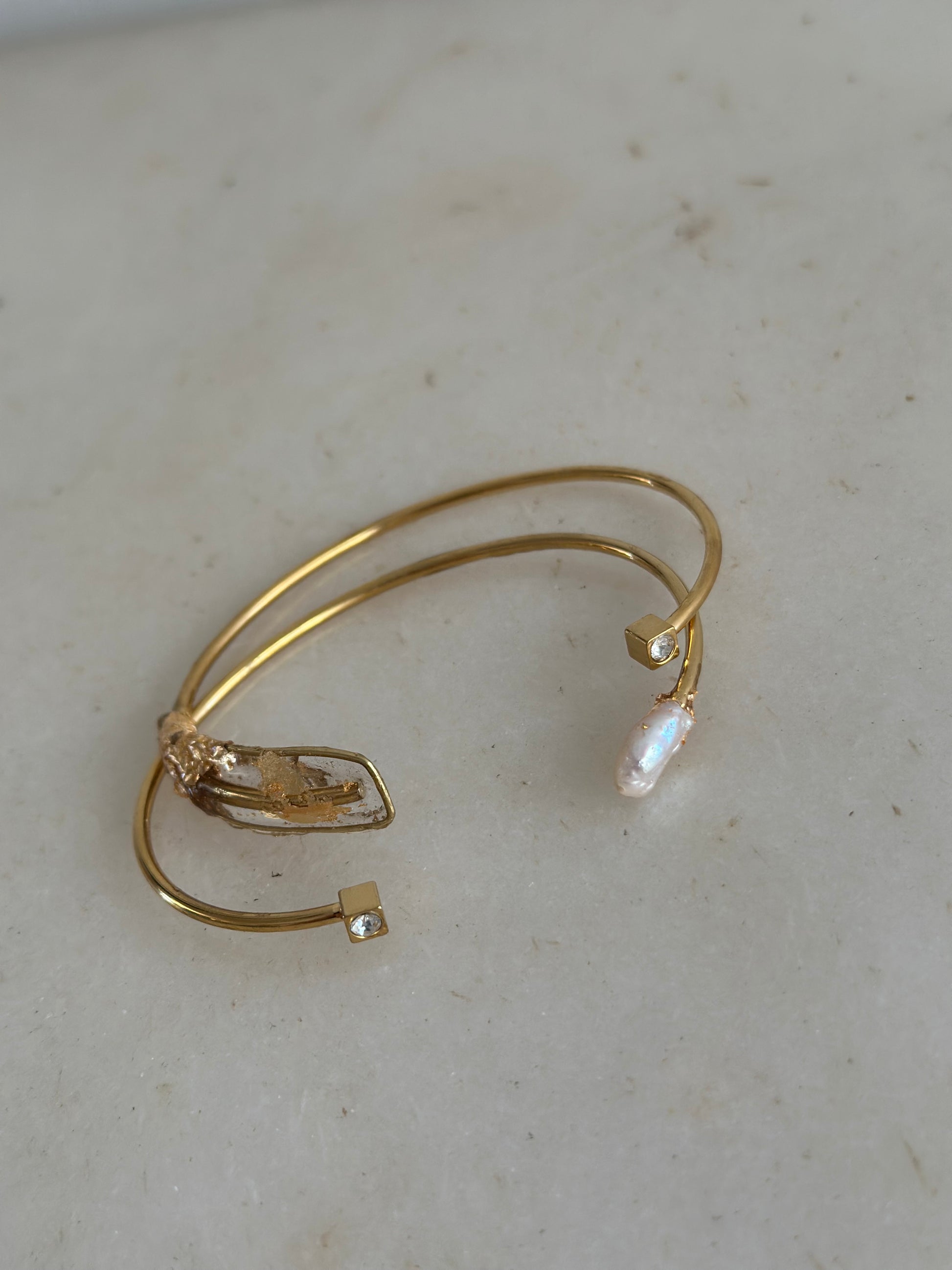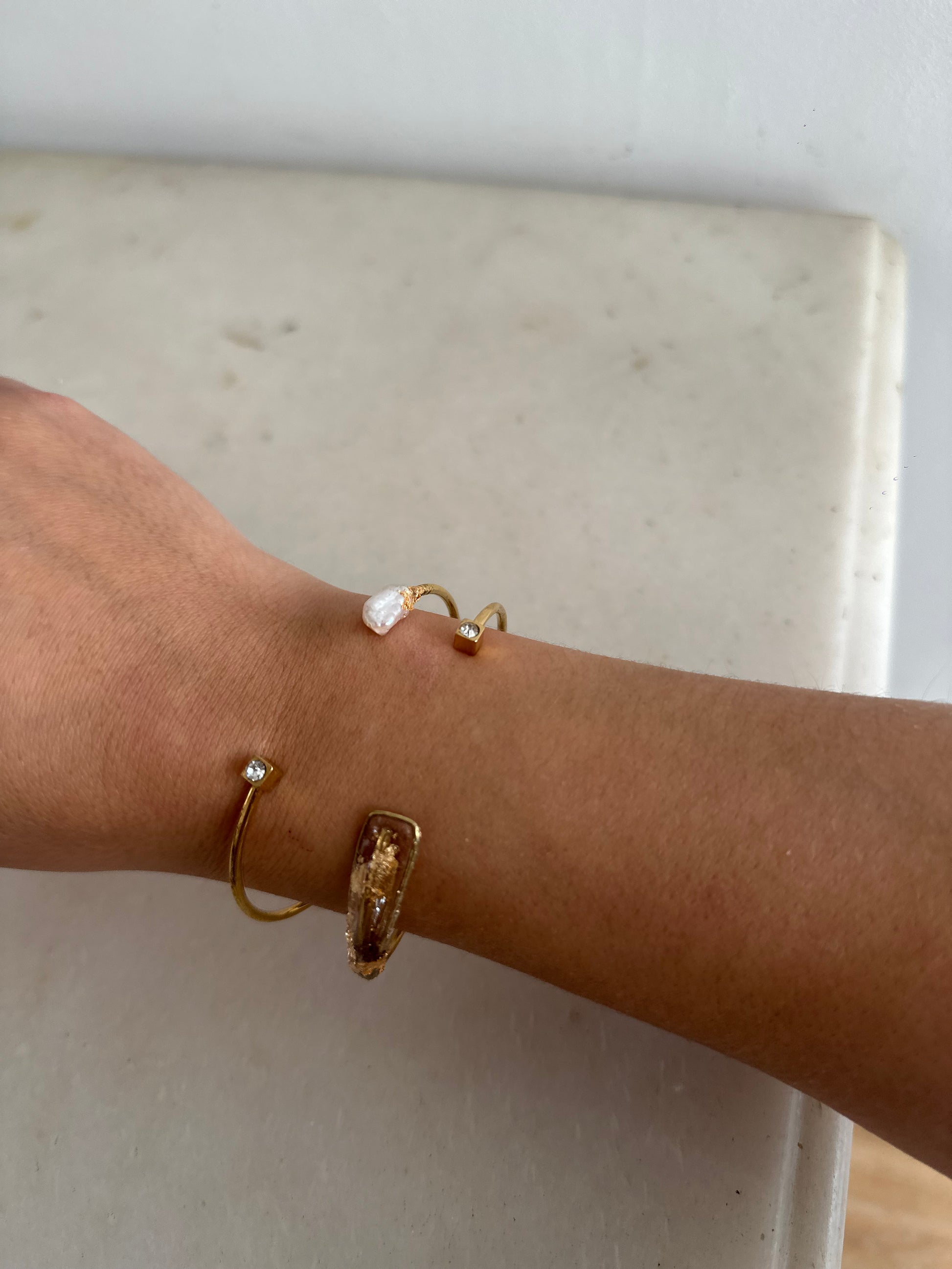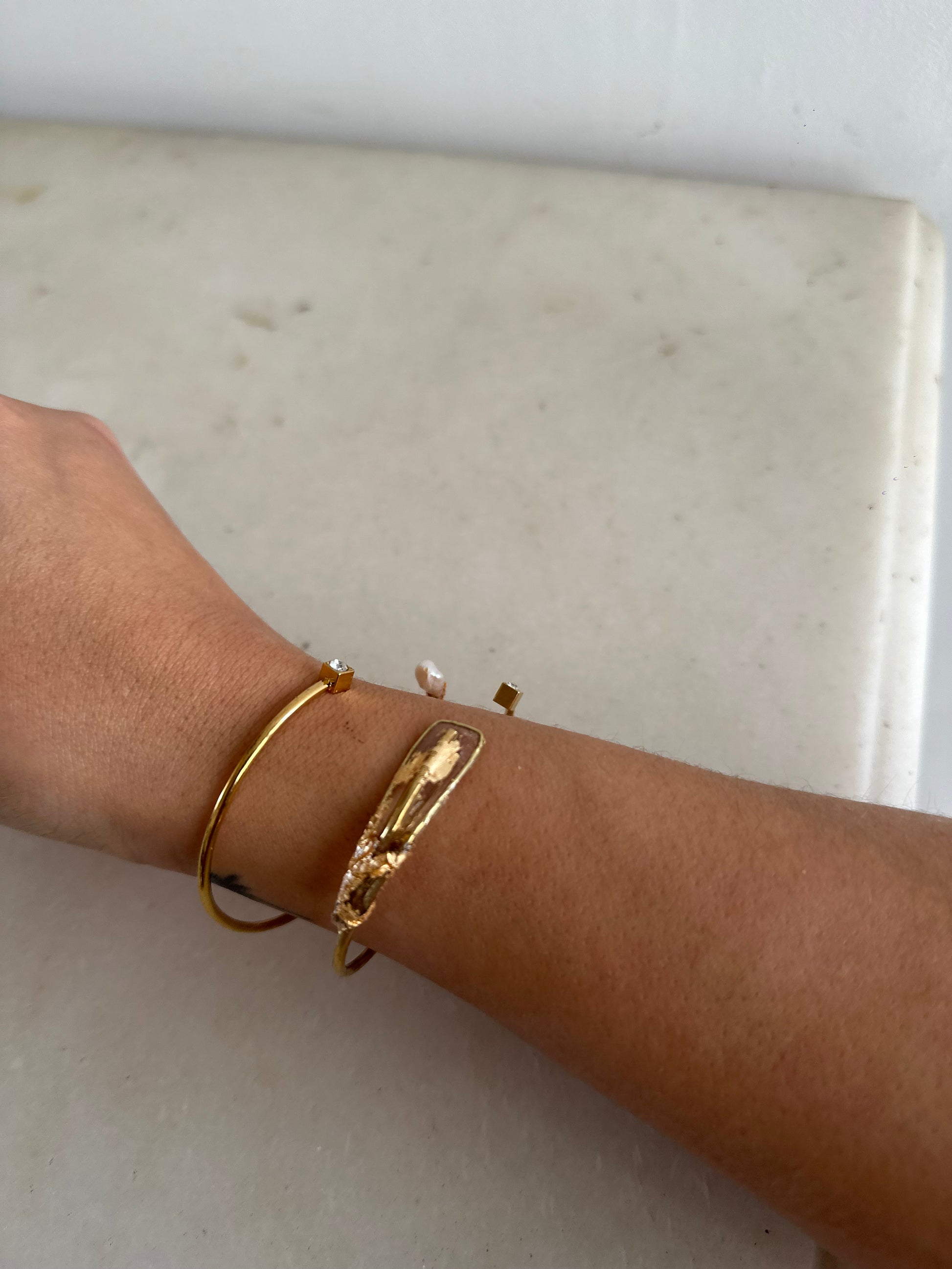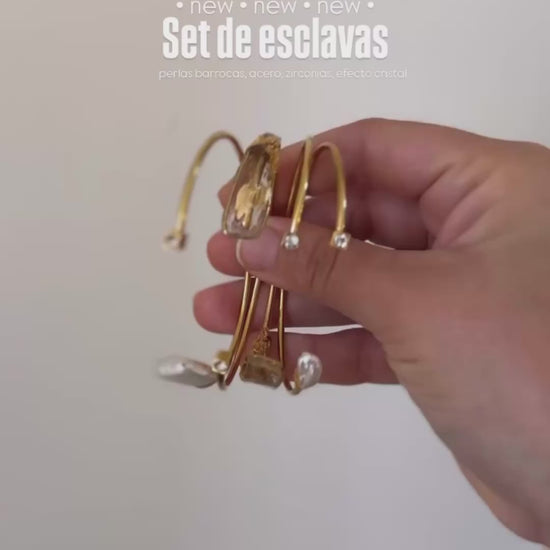 Set de esclavas en acero sumándole piedras engarzadas y zirconias en sus terminaciones.